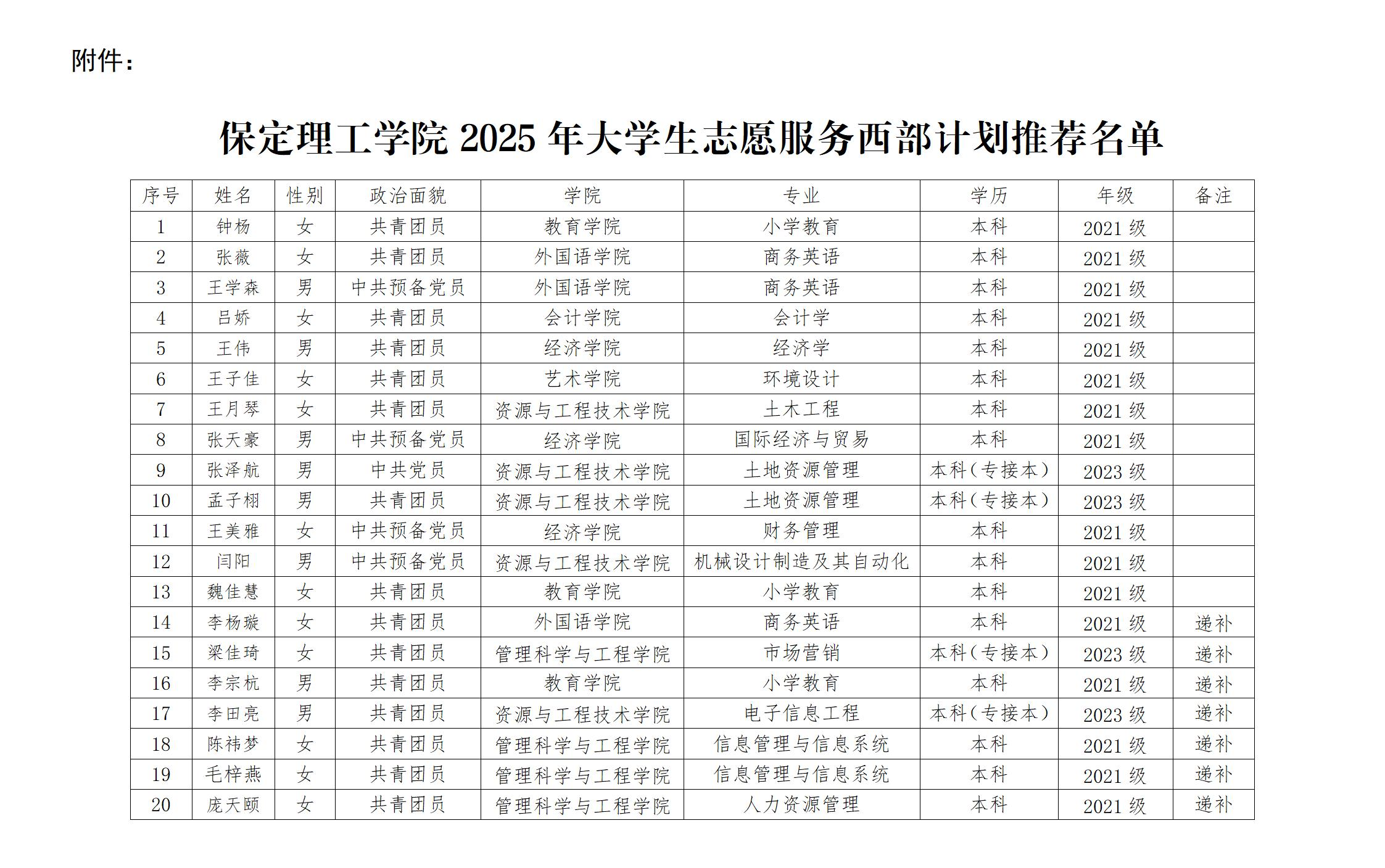 Beat365中文官方网站2025年大学生志愿服务西部计划推荐人员名单公示根据《2025-2026年度大学生志愿服务西部计划实施方案》相关要求,Beat365以“公平、公正、公开”的原则进